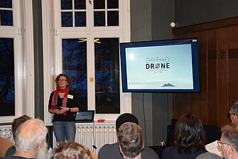 Zu Beginn der Veranstaltung begrüßten die wissenschaftliche Leitung, Frau Clara Drummer und Geschäftsführer Juri Klusak alle Teilnehmer und stellten die Firma Orthodrone vor. Frau Drummer hielt dann anschließend den ersten Vortrag darüber wie UAS-Technologie mit metrischen Sensorsystemen bemannte Befliegungen und manuelle Datenerfassung ersetzen kann. Die nächsten Vortragenden, Herr Gerald Peklar und Herr Frieder Jesper von der Firma NXP Semiconductors Germany GmbH, stellten kurz die Firma NXP und deren Produkte vor bis dann die neuste Hard- und Software zur low-power edge AI Verarbeitung präsentiert wurde. Als Anwendungsbeispiel wurde eine Drohnenanwendung zur Wasserrettung vorgestellt. Beide hatten auch entsprechende HW dabei und stellten diese den Teilnehmern vor. Der letzte Vortragende, Daniel F. Carlson vom Leibnitz-Institut für Ostseeforschung Warnemünde (IOW), berichtete über die herausfordernde Erfassung von sich bewegenden Eisbergen aus der Luft.