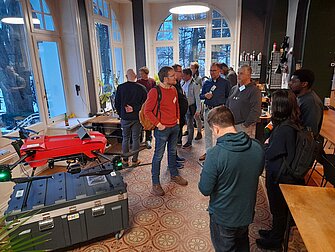 Es fand ein Rundgang durch das Außengelände des Herrenhauses Gut Quarnbek statt. Dort wurde anschaulich gezeigt, wo Orthodrone Testflüge durchführt. - Station 2: „PIVOT Drohne“